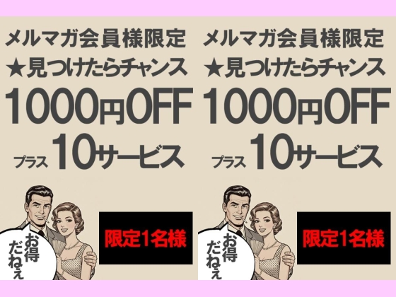 店長コメント メルマガ会員様限定サービス!!! ☆マークの付いている女性がいたら。。。 各キャスト先着1名様に限り 1000円引きかつ+10分サービス!!! ※メルマガ記載の合言葉必須 (必ずご予約の時にお伝えください) ※各種割引併用不可 (Hポイントのみ併用可) ※Hポイント3%付与 ※本指名は割引不可 ※土日祝は+10分はお付けできず 2000円引きとさせて頂きます ※平日でも女性の上がり時間のご都合で +10分はお断りさせて頂く場合がございます。 |